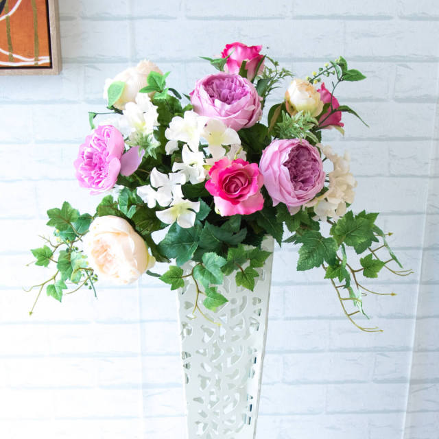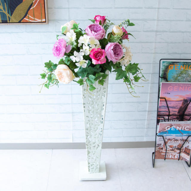 TOP クーポン対象 NOGG ミックス 造花フラワーアレンジメント造花スタンドアレンジフラワー/Medium【~130cm】 【立札無料】造花スタンド H約100cm / 開店祝い 開業祝い 祝い花 空間装飾 店舗装飾/PA011 価格: ¥17,710 (税込) 販売期間: 日時指定について: 送り状伝票に希望としての記載は可能ですが、配送会社の状況、交通状況、天候状況により到着日時は保証しておりませんのでご了承ください。 選択してください 了承しました お届け先住所について: お届け先住所に誤りがある場合や発送後の住所変更は別途有料配送料金がかかります。(配送時に配送業者への直接払いとなります) 選択してください 了承しました ご利用案内: 当店のご利用案内を確認しました 選択してください 確認した お祝い立札デザイン: ご希望のデザイン、または不要かをお選びください。※記載内容は「備考欄」にご記載ください。 選択してください 不要 ◆デザインA(縦書き) ◆デザインB(横書き) ◆おまかせ 数量: 個 在庫: 3個 在庫 3個 返品についての詳細はこちら (PA011)【商品サイズ】H約100cm×W約40cm(スタンドサイズ:□15cm/H約74cm) サイズ別 造花スタンド・フラワーアレンジメント 一覧 【ご利用案内】 詳細はこちらからご確認ください