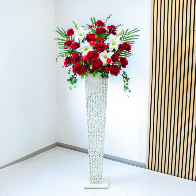 TOP クーポン対象 GG ミックス 造花フラワーアレンジメント造花スタンドアレンジフラワー/Ex-Tall【161cm~】 造花 スタンド アレンジ H約170cm 開店 開業 移転 祝い 装飾 フラワー 花 ギフト プレゼント アレンジメント フェイク 店舗 住宅展示場 モデルハウス ホテル [お祝い立札無料] 大型 通年【PA438-IR120WH 造花スタンドアレンジ(ローズ・etc)/アイアンスタンド120WH】 価格: ¥40,480 (税込) 販売期間: 日時指定について: 送り状伝票に希望としての記載は可能ですが、配送会社の状況、交通状況、天候状況により到着日時は保証しておりませんのでご了承ください。 選択してください 了承しました お届け先住所について: お届け先住所に誤りがある場合や発送後の住所変更は別途有料配送料金がかかります。(配送時に配送業者への直接払いとなります) 選択してください 了承しました ご利用案内: 当店のご利用案内を確認しました 選択してください 確認した お祝い立札デザイン: ご希望のデザイン、または不要かをお選びください。※記載内容は「備考欄」にご記載ください。 選択してください 不要 ◆デザインA(縦書き) ◆デザインB(横書き) ◆おまかせ 数量: 個 在庫: 8個 在庫 8個 返品についての詳細はこちら (PA438-IR120WH)【商品サイズ】H約170cm×W約80cm(スタンドサイズ:□23cm/H約120cm) サイズ別 造花スタンド・フラワーアレンジメント 一覧 【ご利用案内】 詳細はこちらからご確認ください