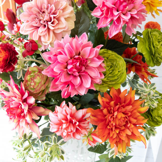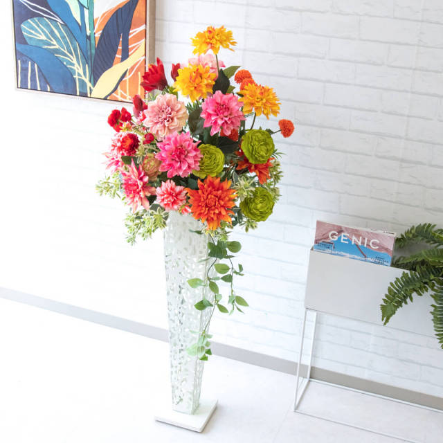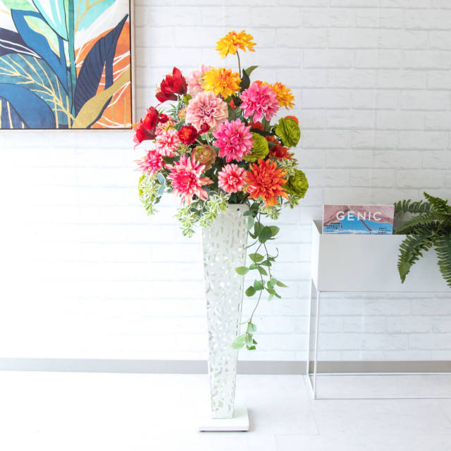 TOP クーポン対象 GG ミックス 造花フラワーアレンジメント造花スタンドアレンジフラワー/Medium【~130cm】 【立札無料】造花スタンド H約125cm / 開店祝い 開業祝い 祝い花 空間装飾 店舗装飾/PA606-IR72WH 価格: ¥28,270 (税込) 販売期間: 日時指定について: 送り状伝票に希望としての記載は可能ですが、配送会社の状況、交通状況、天候状況により到着日時は保証しておりませんのでご了承ください。 選択してください 了承しました お届け先住所について: お届け先住所に誤りがある場合や発送後の住所変更は別途有料配送料金がかかります。(配送時に配送業者への直接払いとなります) 選択してください 了承しました ご利用案内: 当店のご利用案内を確認しました 選択してください 確認した お祝い立札デザイン: ご希望のデザイン、または不要かをお選びください。※記載内容は「備考欄」にご記載ください。 選択してください 不要 ◆デザインA(縦書き) ◆デザインB(横書き) ◆おまかせ 数量: 個 在庫: 1個 在庫 1個 返品についての詳細はこちら (PA606-IR72WH)【商品サイズ】H約125cm×W約50cm(スタンドサイズ:□15cm/H約74cm) サイズ別 造花スタンド・フラワーアレンジメント 一覧 【ご利用案内】 詳細はこちらからご確認ください