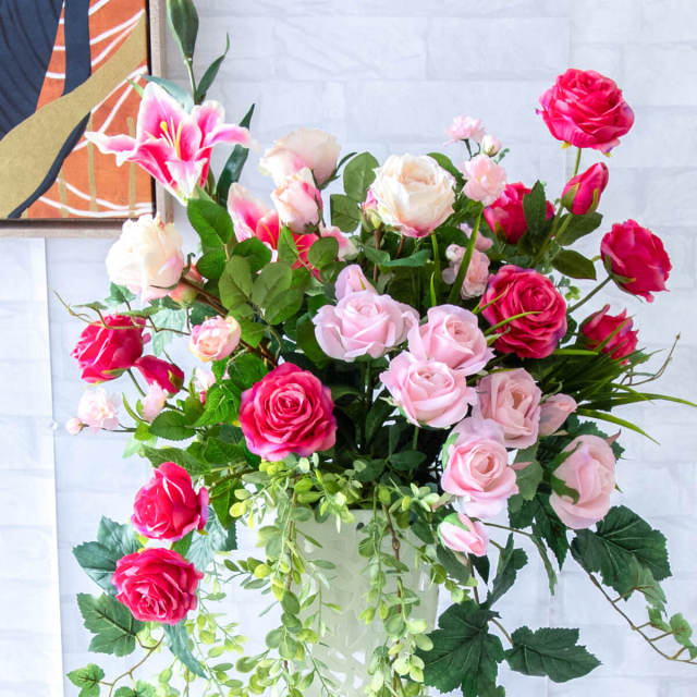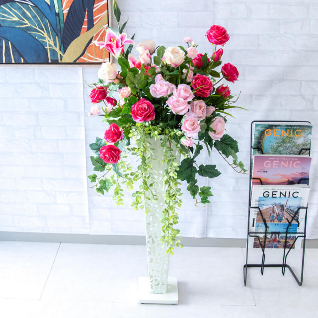 TOP クーポン対象 GG ミックス 造花フラワーアレンジメント造花スタンドアレンジフラワー/Medium【~130cm】 【立札無料】造花スタンド H約120cm / 開店祝い 開業祝い 祝い花 空間装飾 店舗装飾/PA689-IR72WH 価格: ¥22,110 (税込) 販売期間: 日時指定について: 送り状伝票に希望としての記載は可能ですが、配送会社の状況、交通状況、天候状況により到着日時は保証しておりませんのでご了承ください。 選択してください 了承しました お届け先住所について: お届け先住所に誤りがある場合や発送後の住所変更は別途有料配送料金がかかります。(配送時に配送業者への直接払いとなります) 選択してください 了承しました ご利用案内: 当店のご利用案内を確認しました 選択してください 確認した お祝い立札デザイン: ご希望のデザイン、または不要かをお選びください。※記載内容は「備考欄」にご記載ください。 選択してください 不要 ◆デザインA(縦書き) ◆デザインB(横書き) ◆おまかせ 数量: 個 在庫: 3個 在庫 3個 返品についての詳細はこちら (PA689-IR72WH)【商品サイズ】H約120cm×W約50cm(スタンドサイズ:□15cm/H約74cm) サイズ別 造花スタンド・フラワーアレンジメント 一覧 【ご利用案内】 詳細はこちらからご確認ください
