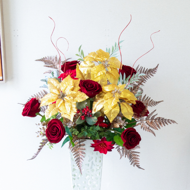 TOP クーポン対象 GG 冬装飾 造花フラワーアレンジメント造花スタンドアレンジフラワー/Medium【~130cm】 【立札無料】造花スタンド H約120cm / 開店祝い 開業祝い 祝い花 空間装飾 店舗装飾/PA894-IR72WH 価格: ¥21,780 (税込) 販売期間: 日時指定について: 送り状伝票に希望としての記載は可能ですが、配送会社の状況、交通状況、天候状況により到着日時は保証しておりませんのでご了承ください。 選択してください 了承しました お届け先住所について: お届け先住所に誤りがある場合や発送後の住所変更は別途有料配送料金がかかります。(配送時に配送業者への直接払いとなります) 選択してください 了承しました ご利用案内: 当店のご利用案内を確認しました 選択してください 確認した お祝い立札デザイン: ご希望のデザイン、または不要かをお選びください。※記載内容は「備考欄」にご記載ください。 選択してください 不要 ◆デザインA(縦書き) ◆デザインB(横書き) ◆おまかせ 数量: 個 在庫: 5個 在庫 5個 返品についての詳細はこちら (PA894-IR72WH)【商品サイズ】H約120cm×W約50cm(スタンドサイズ:□15cm/H約74cm) サイズ別 造花スタンド・フラワーアレンジメント 一覧 【ご利用案内】 詳細はこちらからご確認ください