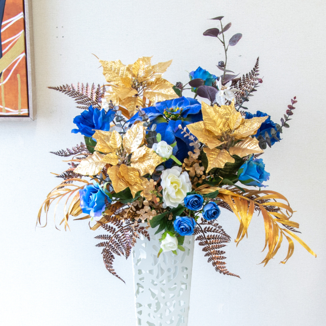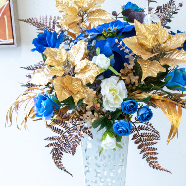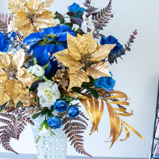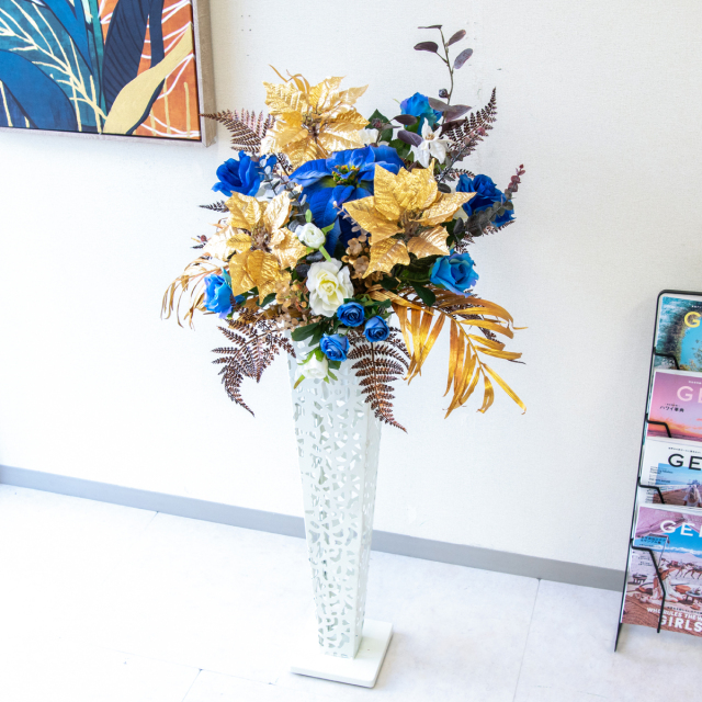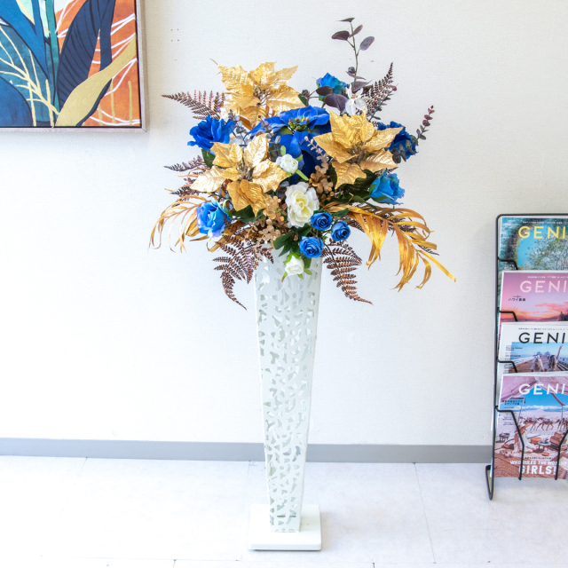 TOP クーポン対象 GG 冬装飾 造花フラワーアレンジメント造花スタンドアレンジフラワー/Medium【~130cm】 造花 スタンド アレンジ H約120cm 開店 開業 移転 祝い 装飾 フラワー 花 ギフト プレゼント アレンジメント フェイク 店舗 住宅展示場 モデルハウス [お祝い立札無料] 冬装飾【PA904-IR72WH 造花スタンドアレンジ(ポインセチア・ラナンキュラス)/アイアンスタンド72WH】 価格: ¥20,790 (税込) 販売期間: 日時指定について: 送り状伝票に希望としての記載は可能ですが、配送会社の状況、交通状況、天候状況により到着日時は保証しておりませんのでご了承ください。 選択してください 了承しました お届け先住所について: お届け先住所に誤りがある場合や発送後の住所変更は別途有料配送料金がかかります。(配送時に配送業者への直接払いとなります) 選択してください 了承しました ご利用案内: 当店のご利用案内を確認しました 選択してください 確認した お祝い立札デザイン: ご希望のデザイン、または不要かをお選びください。※記載内容は「備考欄」にご記載ください。 選択してください 不要 ◆デザインA(縦書き) ◆デザインB(横書き) ◆おまかせ 数量: 個 在庫: 1個 在庫 1個 返品についての詳細はこちら (PA904-IR72WH)【商品サイズ】H約120cm×W約55cm(スタンドサイズ:□15cm/H約74cm) サイズ別 造花スタンド・フラワーアレンジメント 一覧 【ご利用案内】 詳細はこちらからご確認ください