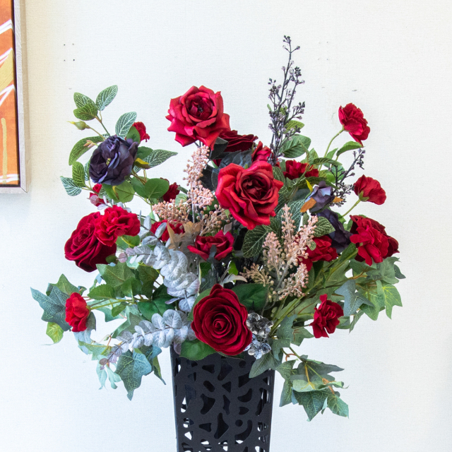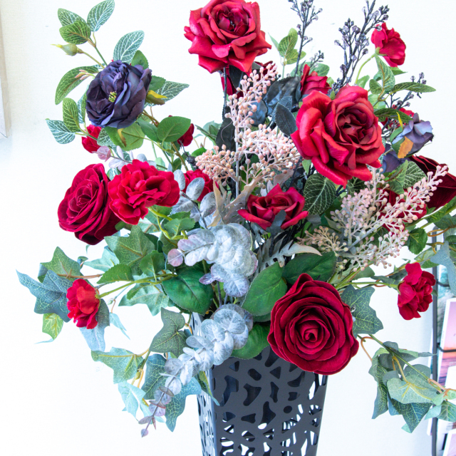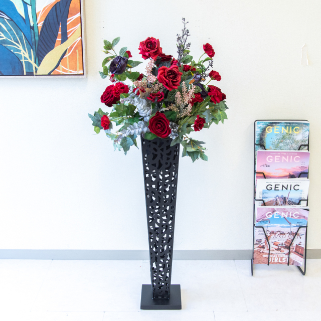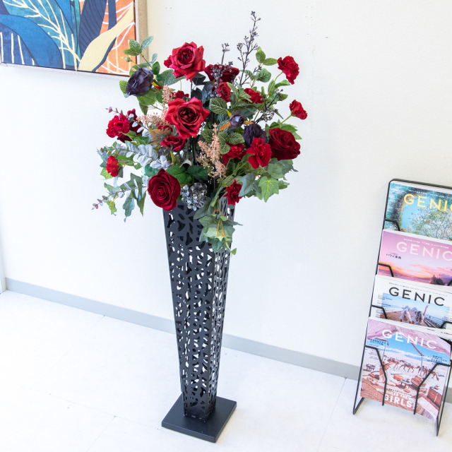 TOP クーポン対象 GG ミックス 造花フラワーアレンジメント造花スタンドアレンジフラワー/Medium【~130cm】 造花 スタンド アレンジ H約115cm 開店 開業 移転 祝い 装飾 フラワー 花 ギフト プレゼント アレンジメント フェイク 店舗 住宅展示場 モデルハウス ホテル [お祝い立札無料] 【PA907-IR72BK 造花スタンドアレンジ(ローズ・ユーカリ)/アイアンスタンド72BK】 価格: ¥20,790 (税込) 販売期間: 日時指定について: 送り状伝票に希望としての記載は可能ですが、配送会社の状況、交通状況、天候状況により到着日時は保証しておりませんのでご了承ください。 選択してください 了承しました お届け先住所について: お届け先住所に誤りがある場合や発送後の住所変更は別途有料配送料金がかかります。(配送時に配送業者への直接払いとなります) 選択してください 了承しました ご利用案内: 当店のご利用案内を確認しました 選択してください 確認した お祝い立札デザイン: ご希望のデザイン、または不要かをお選びください。※記載内容は「備考欄」にご記載ください。 選択してください 不要 ◆デザインA(縦書き) ◆デザインB(横書き) ◆おまかせ 数量: 個 在庫: 3個 在庫 3個 返品についての詳細はこちら (PA907-IR72BK)【商品サイズ】H約115cm×W約45cm(スタンドサイズ:□15cm/H約74cm) サイズ別 造花スタンド・フラワーアレンジメント 一覧 【ご利用案内】 詳細はこちらからご確認ください