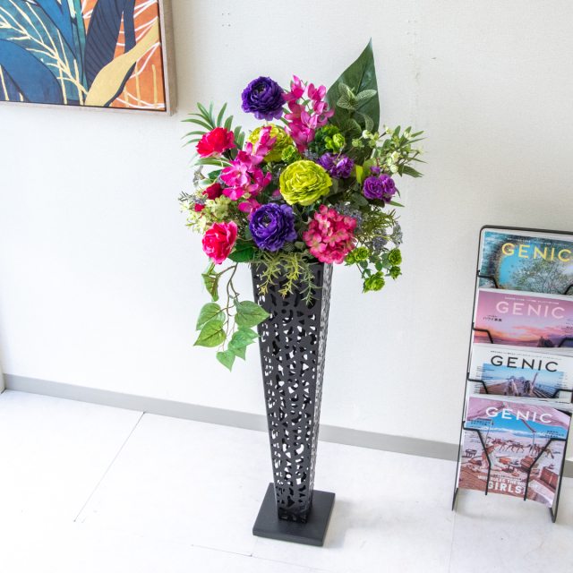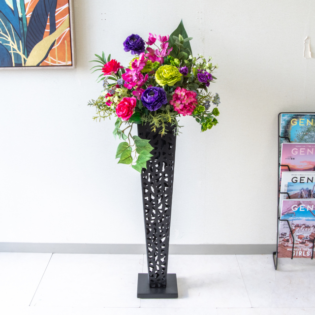 TOP クーポン対象 GG ミックス 造花フラワーアレンジメント造花スタンドアレンジフラワー/Medium【~130cm】 【立札無料】造花スタンド H約110cm / 開店祝い 開業祝い 祝い花 空間装飾 店舗装飾/PA915-IR72BK 価格: ¥23,760 (税込) 販売期間: 日時指定について: 送り状伝票に希望としての記載は可能ですが、配送会社の状況、交通状況、天候状況により到着日時は保証しておりませんのでご了承ください。 選択してください 了承しました お届け先住所について: お届け先住所に誤りがある場合や発送後の住所変更は別途有料配送料金がかかります。(配送時に配送業者への直接払いとなります) 選択してください 了承しました ご利用案内: 当店のご利用案内を確認しました 選択してください 確認した お祝い立札デザイン: ご希望のデザイン、または不要かをお選びください。※記載内容は「備考欄」にご記載ください。 選択してください 不要 ◆デザインA(縦書き) ◆デザインB(横書き) ◆おまかせ 数量: 個 在庫: 1個 在庫 1個 返品についての詳細はこちら (PA915-IR72BK)【商品サイズ】H約110cm×W約50cm(スタンドサイズ:□15cm/H約74cm) サイズ別 造花スタンド・フラワーアレンジメント 一覧 【ご利用案内】 詳細はこちらからご確認ください