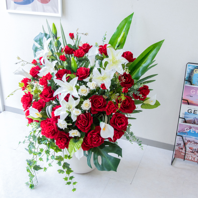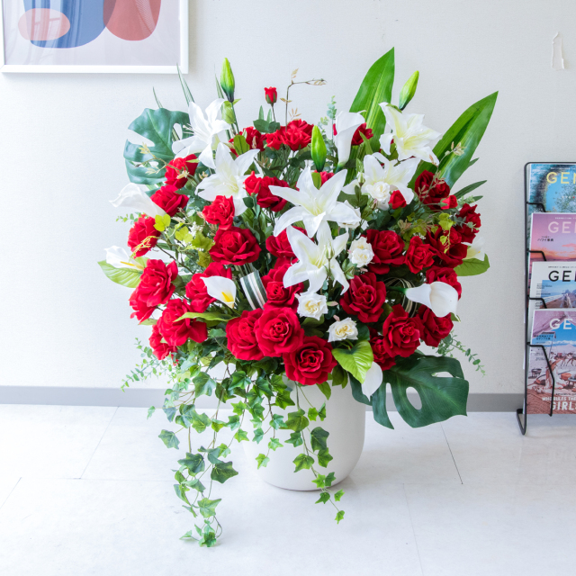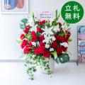 TOP クーポン対象 GG ミックス 造花フラワーアレンジメント造花フラワーアレンジメント/Small【~120cm】 【立札無料】造花アレンジ H約100cm / 開店祝い 開業祝い 祝い花 空間装飾 店舗装飾/PA933-CHC29IV 価格: ¥47,718 (税込) 販売期間: 日時指定について: 送り状伝票に希望としての記載は可能ですが、配送会社の状況、交通状況、天候状況により到着日時は保証しておりませんのでご了承ください。 選択してください 了承しました お届け先住所について: お届け先住所に誤りがある場合や発送後の住所変更は別途有料配送料金がかかります。(配送時に配送業者への直接払いとなります) 選択してください 了承しました ご利用案内: 当店のご利用案内を確認しました 選択してください 確認した お祝い立札デザイン: ご希望のデザイン、または不要かをお選びください。※記載内容は「備考欄」にご記載ください。 選択してください 不要 ◆デザインA(縦書き) ◆デザインB(横書き) ◆おまかせ 数量: 個 在庫: 10個 在庫 10個 返品についての詳細はこちら (PA933-CHC29IV)【商品サイズ】H約100cm×W約85cm(器サイズ:Φ約29cm/H約33cm) サイズ別 造花スタンド・フラワーアレンジメント 一覧 【ご利用案内】 詳細はこちらからご確認ください