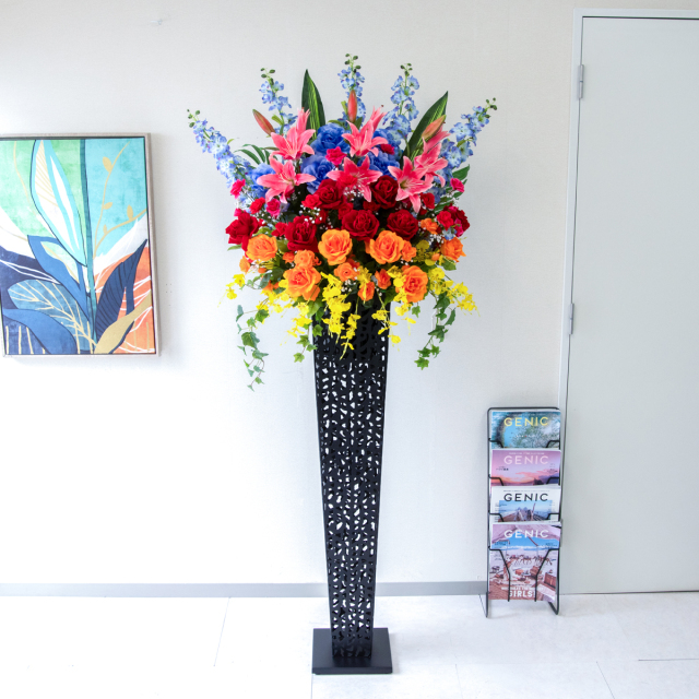 TOP クーポン対象 GG ミックス 造花フラワーアレンジメント造花スタンドアレンジフラワー/Ex-Tall【161cm~】 【立札無料】造花スタンド 大型 H約185cm / 開店祝い 開業祝い 祝い花 空間装飾 店舗装飾/PA939-IR120BK 価格: ¥52,580 (税込) 販売期間: 日時指定について: 送り状伝票に希望としての記載は可能ですが、配送会社の状況、交通状況、天候状況により到着日時は保証しておりませんのでご了承ください。 選択してください 了承しました お届け先住所について: お届け先住所に誤りがある場合や発送後の住所変更は別途有料配送料金がかかります。(配送時に配送業者への直接払いとなります) 選択してください 了承しました ご利用案内: 当店のご利用案内を確認しました 選択してください 確認した お祝い立札デザイン: ご希望のデザイン、または不要かをお選びください。※記載内容は「備考欄」にご記載ください。 選択してください 不要 ◆デザインA(縦書き) ◆デザインB(横書き) ◆おまかせ 数量: 個 在庫: 10個 在庫 10個 返品についての詳細はこちら (PA939-IR120BK)【商品サイズ】H約185cm×W約70cm(スタンドサイズ:□23cm/H約120cm) サイズ別 造花スタンド・フラワーアレンジメント 一覧 【ご利用案内】 詳細はこちらからご確認ください