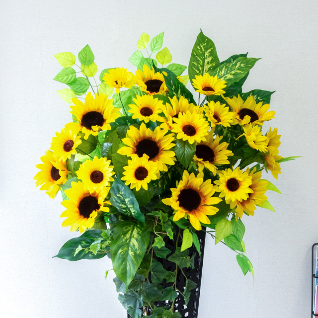 TOP クーポン対象 GG 夏装飾 造花フラワーアレンジメント造花スタンドアレンジフラワー/Tall【~160cm】 【立札無料】造花スタンド H約140cm / 開店祝い 開業祝い 祝い花 空間装飾 店舗装飾/PA959-IR90BK 価格: ¥35,750 (税込) 販売期間: 日時指定について: 送り状伝票に希望としての記載は可能ですが、配送会社の状況、交通状況、天候状況により到着日時は保証しておりませんのでご了承ください。 選択してください 了承しました お届け先住所について: お届け先住所に誤りがある場合や発送後の住所変更は別途有料配送料金がかかります。(配送時に配送業者への直接払いとなります) 選択してください 了承しました ご利用案内: 当店のご利用案内を確認しました 選択してください 確認した お祝い立札デザイン: ご希望のデザイン、または不要かをお選びください。※記載内容は「備考欄」にご記載ください。 選択してください 不要 ◆デザインA(縦書き) ◆デザインB(横書き) ◆おまかせ 数量: 個 在庫: 3個 在庫 3個 返品についての詳細はこちら (PA959-IR90BK)【商品サイズ】H約140cm×W約65cm(スタンドサイズ:□23cm/H約90cm) サイズ別 造花スタンド・フラワーアレンジメント 一覧 【ご利用案内】 詳細はこちらからご確認ください