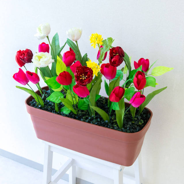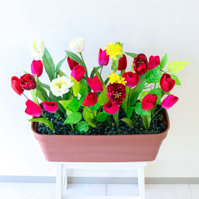 TOP クーポン対象 GG 春装飾 造花プランター造花プランター/プランター特価コーナー 造花プランター フラワープランター フラワーアレンジメント フェイクグリーン 店舗装飾 ディスプレイ パチンコ店 工事現場 住宅展示場 モデルハウス ショールーム 春装飾 マルチカラー/PF539-LB 造花プランター(チューリップ・etc) 価格: ¥3,850 (税込) 販売期間: 日時指定について: 送り状伝票に希望としての記載は可能ですが、配送会社の状況、交通状況、天候状況により到着日時は保証しておりませんのでご了承ください。 選択してください 了承しました お届け先住所について: お届け先住所に誤りがある場合や発送後の住所変更は別途有料配送料金がかかります。(配送時に配送業者への直接払いとなります) 選択してください 了承しました ご利用案内: 当店のご利用案内を確認しました 選択してください 確認した 数量: 個 在庫: 1個 在庫 1個 返品についての詳細はこちら (PF539-LB)H約47cm×W約55cm(プランターサイズ:H約18cm×W約50cm×D約20cm) 【ご利用案内】 詳細はこちらからご確認ください