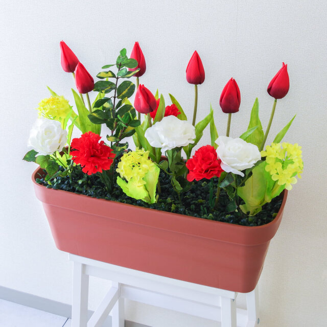 TOP クーポン対象 GG 春装飾 造花プランター造花プランター/プランター特価コーナー 造花プランター フラワープランター フラワーアレンジメント フェイクグリーン 店舗装飾 ディスプレイ パチンコ店 工事現場 住宅展示場 モデルハウス ショールーム 春装飾 マルチカラー/PF560-LB 造花プランター(チューリップ・菜の花・etc) 価格: ¥3,850 (税込) 販売期間: 日時指定について: 送り状伝票に希望としての記載は可能ですが、配送会社の状況、交通状況、天候状況により到着日時は保証しておりませんのでご了承ください。 選択してください 了承しました お届け先住所について: お届け先住所に誤りがある場合や発送後の住所変更は別途有料配送料金がかかります。(配送時に配送業者への直接払いとなります) 選択してください 了承しました ご利用案内: 当店のご利用案内を確認しました 選択してください 確認した 数量: 個 在庫: 3個 在庫 3個 返品についての詳細はこちら (PF560-LB)H約40cm×W約50cm(プランターサイズ:H約18cm×W約50cm×D約20cm) 【ご利用案内】 詳細はこちらからご確認ください