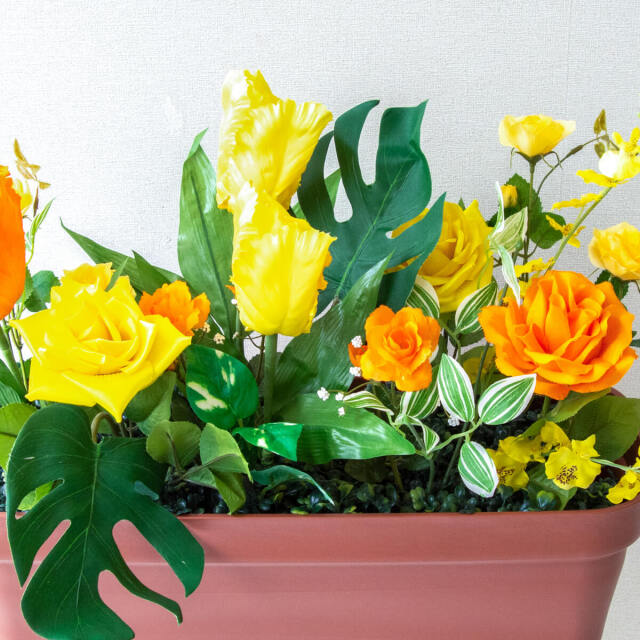 TOP クーポン対象 GG 春装飾 造花プランター造花プランター/プランター特価コーナー 造花プランター フラワープランター フラワーアレンジメント フェイクグリーン 店舗装飾 ディスプレイ パチンコ店 工事現場 住宅展示場 モデルハウス ショールーム 春装飾 イエロー/PF586-LB 造花プランター(チューリップ) 価格: ¥3,850 (税込) 販売期間: 日時指定について: 送り状伝票に希望としての記載は可能ですが、配送会社の状況、交通状況、天候状況により到着日時は保証しておりませんのでご了承ください。 選択してください 了承しました お届け先住所について: お届け先住所に誤りがある場合や発送後の住所変更は別途有料配送料金がかかります。(配送時に配送業者への直接払いとなります) 選択してください 了承しました ご利用案内: 当店のご利用案内を確認しました 選択してください 確認した 数量: 個 在庫: 1個 在庫 1個 返品についての詳細はこちら (PF586-LB)H約40cm×W約50cm(プランターサイズ:H約18cm×W約50cm×D約20cm) 【ご利用案内】 詳細はこちらからご確認ください