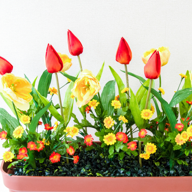 TOP クーポン対象 GG 春装飾 造花プランター造花プランター/プランター特価コーナー 造花プランター フラワープランター フラワーアレンジメント フェイクグリーン 店舗装飾 ディスプレイ パチンコ店 工事現場 住宅展示場 モデルハウス ショールーム 春装飾 イエロー/PF610-LB 造花プランター(チューリップ) 価格: ¥3,850 (税込) 販売期間: 日時指定について: 送り状伝票に希望としての記載は可能ですが、配送会社の状況、交通状況、天候状況により到着日時は保証しておりませんのでご了承ください。 選択してください 了承しました お届け先住所について: お届け先住所に誤りがある場合や発送後の住所変更は別途有料配送料金がかかります。(配送時に配送業者への直接払いとなります) 選択してください 了承しました ご利用案内: 当店のご利用案内を確認しました 選択してください 確認した 数量: 個 在庫: 2個 在庫 2個 返品についての詳細はこちら (PF610-LB)H約45cm×W約50cm(プランターサイズ:H約18cm×W約50cm×D約20cm) 【ご利用案内】 詳細はこちらからご確認ください