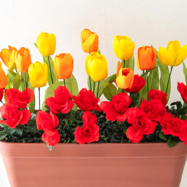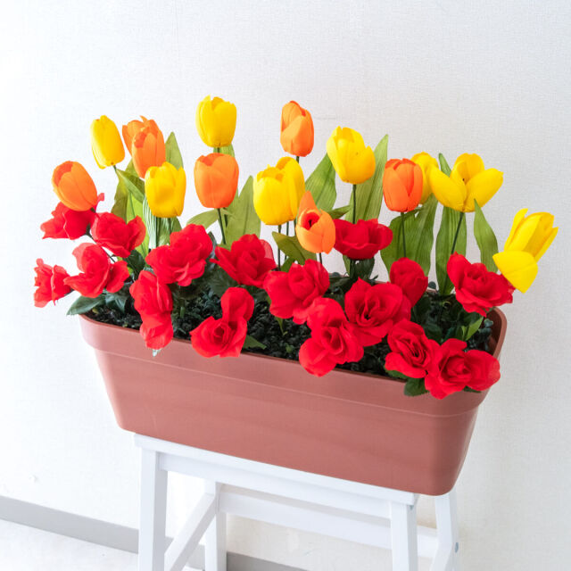 TOP クーポン対象 GG 春装飾 造花プランター造花プランター/プランター特価コーナー 造花プランター フラワープランター フラワーアレンジメント フェイクグリーン 店舗装飾 ディスプレイ パチンコ店 工事現場 住宅展示場 モデルハウス ショールーム 春装飾 マルチカラー/PF622-LB 造花プランター(チューリップ・ローズ) 価格: ¥3,850 (税込) 販売期間: 日時指定について: 送り状伝票に希望としての記載は可能ですが、配送会社の状況、交通状況、天候状況により到着日時は保証しておりませんのでご了承ください。 選択してください 了承しました お届け先住所について: お届け先住所に誤りがある場合や発送後の住所変更は別途有料配送料金がかかります。(配送時に配送業者への直接払いとなります) 選択してください 了承しました ご利用案内: 当店のご利用案内を確認しました 選択してください 確認した 数量: 個 在庫: 6個 在庫 6個 返品についての詳細はこちら (PF622-LB)H約40cm×W約50cm(プランターサイズ:H約18cm×W約50cm×D約20cm) 【ご利用案内】 詳細はこちらからご確認ください