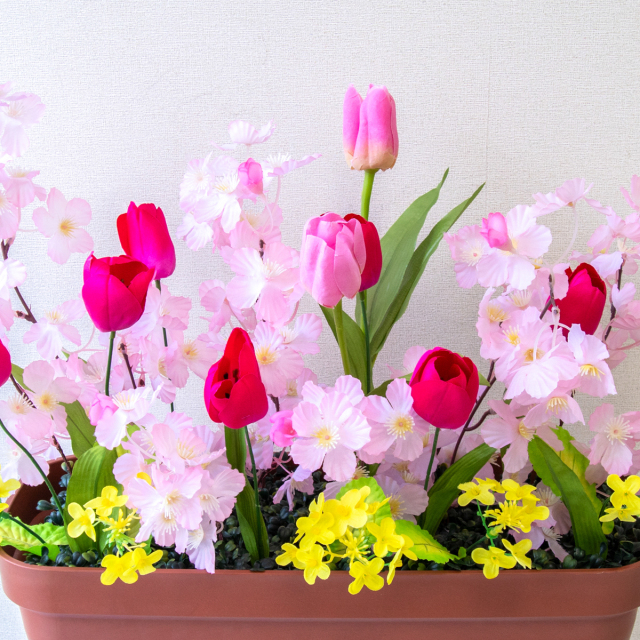 TOP クーポン対象 GG 春装飾 造花プランター造花プランター/プランター特価コーナー 造花プランター フラワープランター フラワーアレンジメント フェイクグリーン 店舗装飾 ディスプレイ パチンコ店 工事現場 住宅展示場 モデルハウス ショールーム 春装飾 ピンク/PF727-LB 造花プランター(桜・チューリップ) 価格: ¥3,850 (税込) 販売期間: 日時指定について: 送り状伝票に希望としての記載は可能ですが、配送会社の状況、交通状況、天候状況により到着日時は保証しておりませんのでご了承ください。 選択してください 了承しました お届け先住所について: お届け先住所に誤りがある場合や発送後の住所変更は別途有料配送料金がかかります。(配送時に配送業者への直接払いとなります) 選択してください 了承しました ご利用案内: 当店のご利用案内を確認しました 選択してください 確認した 数量: 個 在庫: 3個 在庫 3個 返品についての詳細はこちら (PF727-LB)H約50cm×W約60cm(プランターサイズ:H約18cm×W約50cm×D約20cm) 【ご利用案内】 詳細はこちらからご確認ください