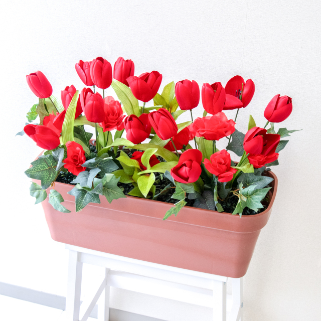 TOP クーポン対象 GG 春装飾 造花プランター造花プランター/プランター特価コーナー 造花プランター フラワープランター フラワーアレンジメント フェイクグリーン 店舗装飾 ディスプレイ パチンコ店 工事現場 住宅展示場 モデルハウス ショールーム 春装飾 レッド/PF732-LB 造花プランター(チューリップ・アイビー) 価格: ¥3,850 (税込) 販売期間: 日時指定について: 送り状伝票に希望としての記載は可能ですが、配送会社の状況、交通状況、天候状況により到着日時は保証しておりませんのでご了承ください。 選択してください 了承しました お届け先住所について: お届け先住所に誤りがある場合や発送後の住所変更は別途有料配送料金がかかります。(配送時に配送業者への直接払いとなります) 選択してください 了承しました ご利用案内: 当店のご利用案内を確認しました 選択してください 確認した 数量: 個 在庫: 10個 在庫 10個 返品についての詳細はこちら (PF732-LB)H約40cm×W約50cm(プランターサイズ:H約18cm×W約50cm×D約20cm) 【ご利用案内】 詳細はこちらからご確認ください