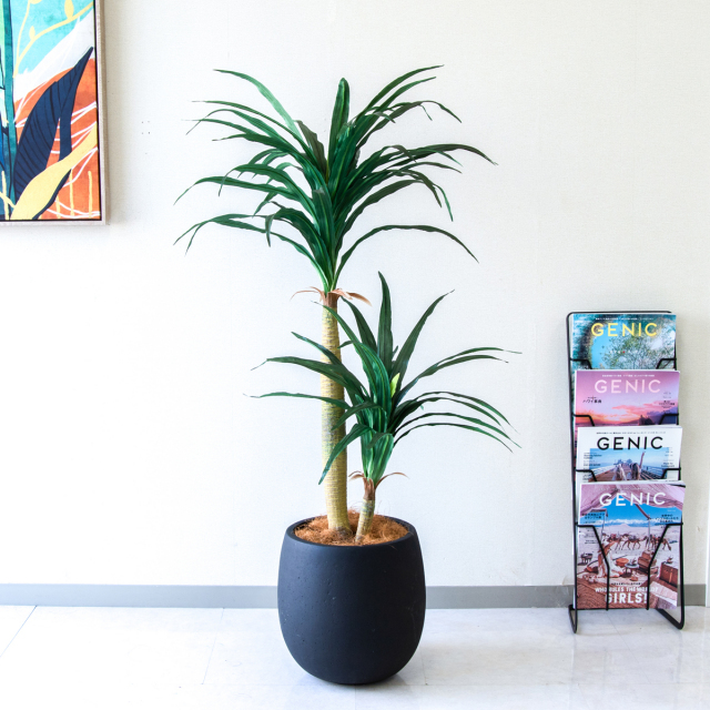 細く尖った葉が放射状に広がるドラセナ・コンシナは、そのスタイリッシュなシルエットから「真実の木」とも呼ばれます。モダンなインテリアやデザイナーズオフィスなど、「洗練された空間」を作りたい方に選ばれています。