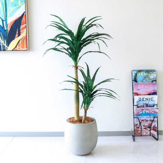 細く尖った葉が放射状に広がるドラセナ・コンシナは、そのスタイリッシュなシルエットから「真実の木」とも呼ばれます。モダンなインテリアやデザイナーズオフィスなど、「洗練された空間」を作りたい方に選ばれています。