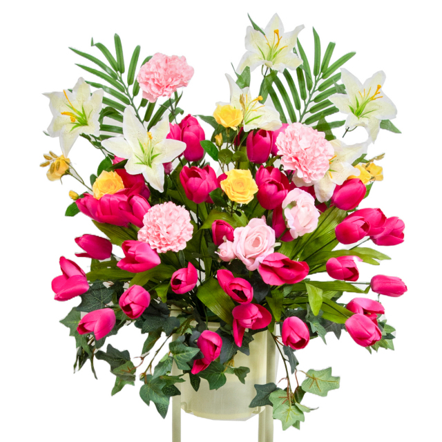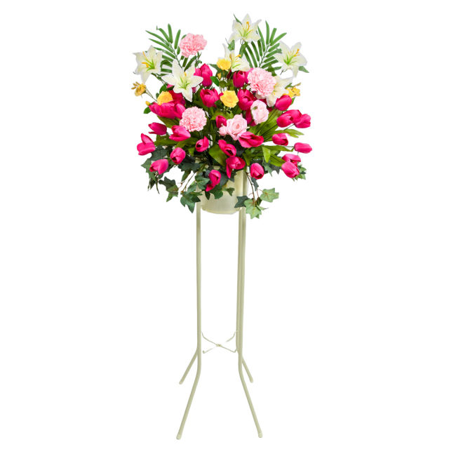 TOP クーポン対象 GG ミックス 造花お祝いスタンド造花お祝いスタンド/1段スタンド【在庫限り特価】 造花 祝い花 開店花 スタンド花 アレンジ 開店 開業 移転 フラワー ギフト プレゼント アレンジメント フェイク 店舗 イベント リニューアル オープン 住宅展示場 パチンコ店 1万円台 1段スタンド A-1【PS143-1-DANSTAND-WH 造花お祝い一段スタンド花/WHスタンド】 価格: ¥16,500 (税込) 販売期間: 日時指定について: 送り状伝票に希望としての記載は可能ですが、配送会社の状況、交通状況、天候状況により到着日時は保証しておりませんのでご了承ください。 選択してください 了承しました お届け先住所について: お届け先住所に誤りがある場合や発送後の住所変更は別途有料配送料金がかかります。(配送時に配送業者への直接払いとなります) 選択してください 了承しました ご利用案内: 当店のご利用案内を確認しました 選択してください 確認した お祝い立札デザイン: ご希望のデザイン、または不要かをお選びください。※記載内容は「備考欄」にご記載ください。 選択してください 不要 【A】花柄立札 / 上段 / 縦書き 【B】花柄立札 / 上段 / 横書き 【C】木目調立札 / 中央 / 縦書き 数量: 個 在庫: 16個 在庫 16個 返品についての詳細はこちら 【商品サイズ】H約170cm 造花お祝いスタンド 一覧 開店祝い開業祝い・開院祝い・オープン祝い・移転祝い・周年祝いなど、 店舗・病院・美容室・オフィスのオープン、竣工式、式典におすすめの造花スタンド花。 定番の1段スタンドや豪華な2段スタンドまで幅広くご用意しています。 【ご利用案内】 詳細はこちらからご確認ください