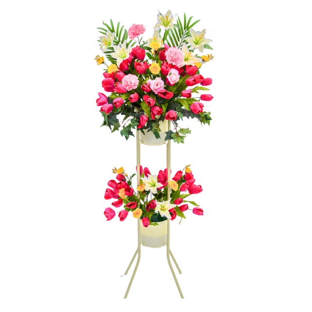 TOP クーポン対象 GG ミックス 造花お祝いスタンド造花お祝いスタンド/2段スタンド【在庫限り特価】 造花 祝い花 開店花 スタンド花 アレンジ 開店 開業 移転 フラワー ギフト プレゼント アレンジメント フェイク 店舗 イベント リニューアル オープン 住宅展示場 パチンコ店 1万円台 2段スタンド A-2【PS143-2-DANSTAND-WH 造花お祝い二段スタンド花/WHスタンド】 価格: ¥19,800 (税込) 販売期間: 日時指定について: 送り状伝票に希望としての記載は可能ですが、配送会社の状況、交通状況、天候状況により到着日時は保証しておりませんのでご了承ください。 選択してください 了承しました お届け先住所について: お届け先住所に誤りがある場合や発送後の住所変更は別途有料配送料金がかかります。(配送時に配送業者への直接払いとなります) 選択してください 了承しました ご利用案内: 当店のご利用案内を確認しました 選択してください 確認した お祝い立札デザイン: ご希望のデザイン、または不要かをお選びください。※記載内容は「備考欄」にご記載ください。 選択してください 不要 【A】花柄立札 / 上段 / 縦書き 【B】花柄立札 / 上段 / 横書き 【C】木目調立札 / 中央 / 縦書き 数量: 個 在庫: 16個 在庫 16個 返品についての詳細はこちら 【商品サイズ】H約170cm 造花お祝いスタンド 一覧 開店祝い開業祝い・開院祝い・オープン祝い・移転祝い・周年祝いなど、 店舗・病院・美容室・オフィスのオープン、竣工式、式典におすすめの造花スタンド花。 定番の1段スタンドや豪華な2段スタンドまで幅広くご用意しています。 【ご利用案内】 詳細はこちらからご確認ください