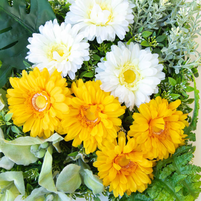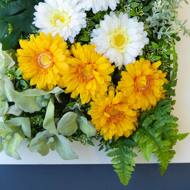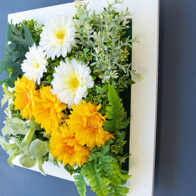 TOP クーポン対象 NOGG ミックス 造花ウッドフレーム壁掛け造花ウッドフレーム壁掛け/CL-40x40 壁掛けアレンジ 造花 ウォールグリーン フェイクグリーン フレーム 壁面緑化 ウォールデコ 壁面 アレンジ ディスプレイ インテリア おしゃれ 店舗装飾【PW306-CL-40x40-WH 壁掛けウッドフレーム造花フラワーアレンジメント】 価格: ¥14,300 (税込) 販売期間: 日時指定について: 送り状伝票に希望としての記載は可能ですが、配送会社の状況、交通状況、天候状況により到着日時は保証しておりませんのでご了承ください。 選択してください 了承しました お届け先住所について: お届け先住所に誤りがある場合や発送後の住所変更は別途有料配送料金がかかります。(配送時に配送業者への直接払いとなります) 選択してください 了承しました ご利用案内: 当店のご利用案内を確認しました 選択してください 確認した お祝い立札デザイン: ご希望のデザイン、または不要かをお選びください。※記載内容は「備考欄」にご記載ください。 選択してください 不要 ◆デザインA(縦書き) ◆デザインB(横書き) ◆おまかせ 数量: 個 在庫: 2個 在庫 2個 返品についての詳細はこちら (PW306-CL-40x40-WH)【フレームサイズ】40cm × 40cm / 厚さ5cm【フレーム材質】木製【仕様】金具フックは商品に取り付けられている状態でのお届けとなります。 【ご利用案内】 詳細はこちらからご確認ください